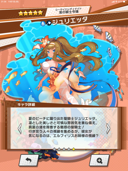 とにかく防御力が高いお陰でアクション苦手な私でも滅多なことでは倒れないのが魅力的。リリスのオート攻略などでもお世話になりました。水着の方はストーリーモードでぐらいしか使えてませんが。