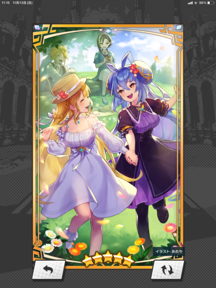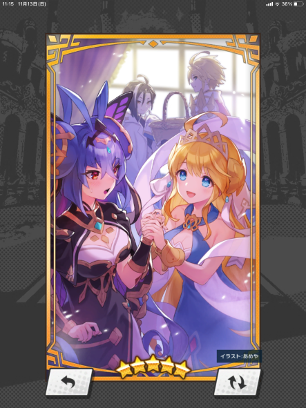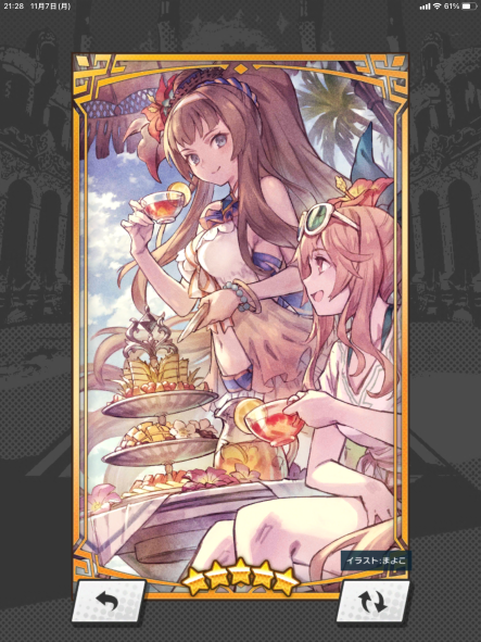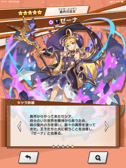 フェスゼーナはタルタロス超級マルチでよく遊んでいた頃、集まった仲間に回復役がいなかった場合にジュリエッタから交代して使ったりしていました。後にリリスなどでは若干回復力が足りずヒルデガルドに席を譲ることが多くなったので、マナサークル6層開放で継続回復と追いうちが付いたのが凄く嬉しかったです。カレイドラビリンスに一番多く挑んだキャラでもあります。バーストが強くて攻略が楽なのもありますが、結局未だにHP+15%のキャラ護符が出ていないので……。